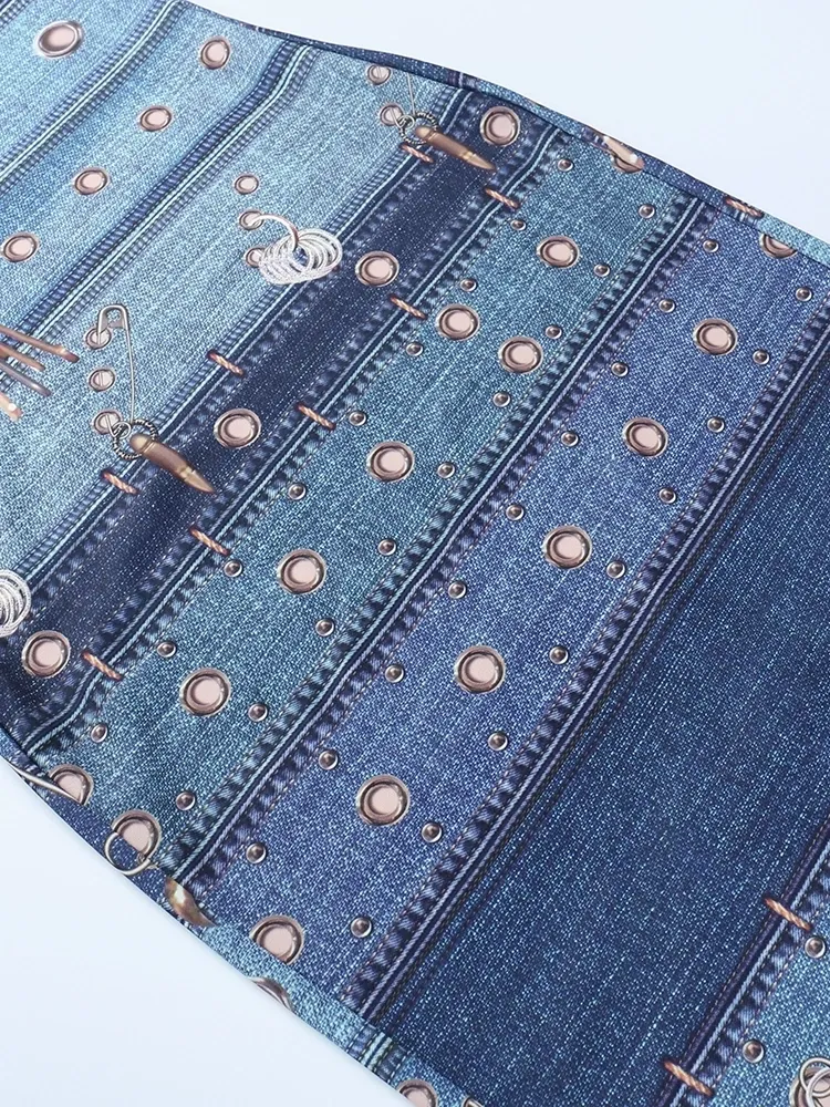 Elevate your style with the Kylie Inspired Denim Print Choker Dress. This chic, figure-flattering design features a trendy choker neckline, perfect for any occasion. Effortlessly fashionable.